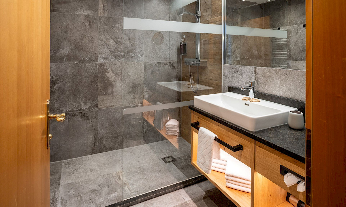 Doppelzimmer Kaiserpanorama Superior mit 48 m² und südseitiger Terrasse für einen herrlichen Blick auf den Wilden Kaiser.