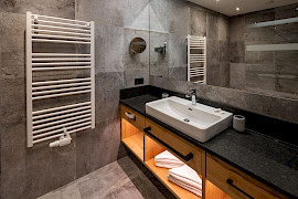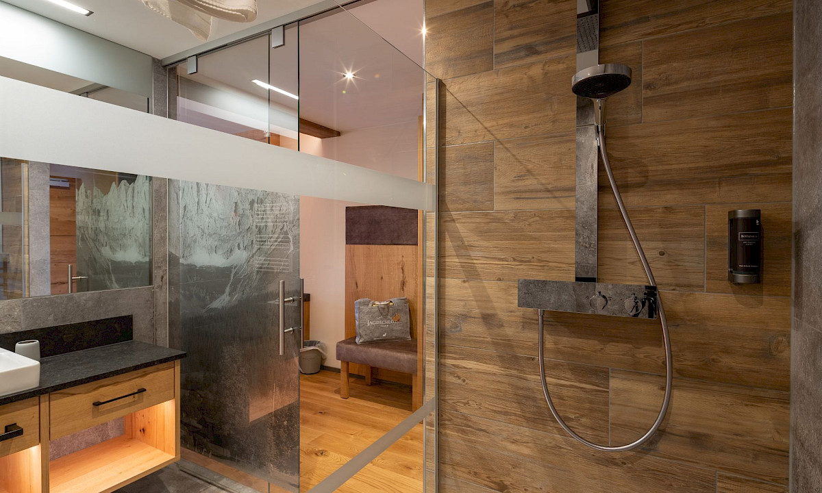 The 'Ansitz' Kaiser suite junior with 60 sqm and its own terrace and tiled stove for truly imperial enjoyment.