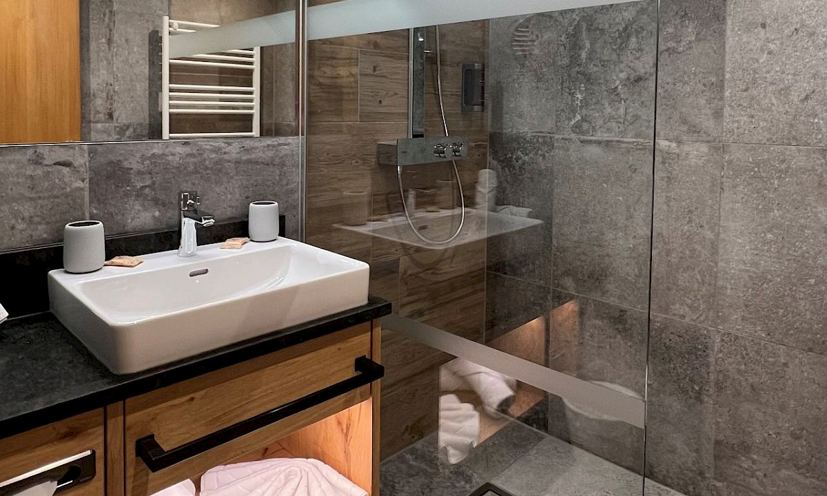 The 'Ansitz' Kaiser suite junior with 60 sqm and its own terrace and tiled stove for truly imperial enjoyment.