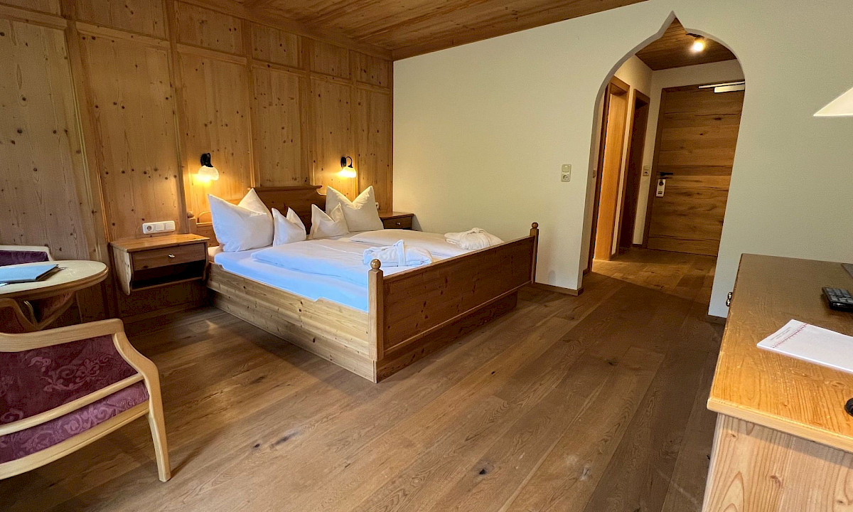The spacious 'Ansitz' double room with 30 sqm is located in the attic.